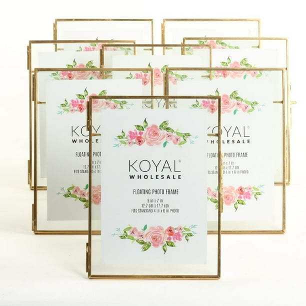 Koyal Wholesale Pressed Glass Floating Photo Frames 5 X 7 Frame Gold 8 Pack With Stands Use Horizontal Or Vertical Walmart Com Walmart Com